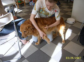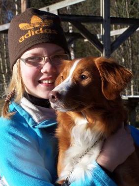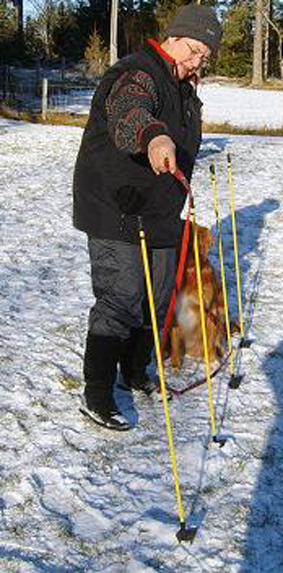 Sandra med sin Clumbern Renée, som visar hur hon ska gå mellan