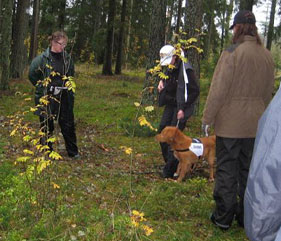 att släppa våra hundar vid rätt tillfälle för att leta upp den gömda