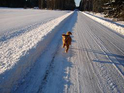 Hundskallet´s Felicia af Ferdinand eller Freja som hon kallas bor med sin familj i Storuman och det är husse Christian, matte Petra och lillmatte Matilda och Ulander är efternamnet. De tre första bilderna har Christian tagit, de andra bilderna har jag fått från Anita Wahlberg på Ducktails Kennel. Den 5 december 2011 fick Freja somna in. Familjen Ulander har också Morrgan som finns under M-kullen
